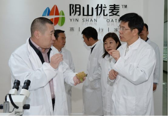 民豐種業(yè)董事長盧文兵對公司近年來的發(fā)展情況以及企業(yè)三產(chǎn)融合的實施布局情況向黃志強副主席進行了詳細的匯報。近幾年,民豐種業(yè)已發(fā)展成為中國集馬鈴薯、燕麥研發(fā)、種子生產(chǎn)、分級加工、物流倉儲、推廣銷售于一體的現(xiàn)代化農(nóng)業(yè)企業(yè),是農(nóng)業(yè)產(chǎn)業(yè)化國家重點龍頭企業(yè)、國家高新技術(shù)企業(yè)、自治區(qū)扶貧龍頭企業(yè)。子公司陰山優(yōu)麥已發(fā)展成為中國燕麥深加工企業(yè),是自治區(qū)農(nóng)業(yè)產(chǎn)業(yè)化重點龍頭企業(yè)和自治區(qū)扶貧龍頭企業(yè),所生產(chǎn)的燕麥米、燕麥片、燕麥餐杯、燕麥高纖素等燕麥食品銷往全國二十多個省市,成為百姓餐桌上的大健康食品。子公司蒙薯食品“年產(chǎn)8000噸低溫油炸薯條、2000噸胡蘿卜脆片加工項目”也將于今年投產(chǎn)。