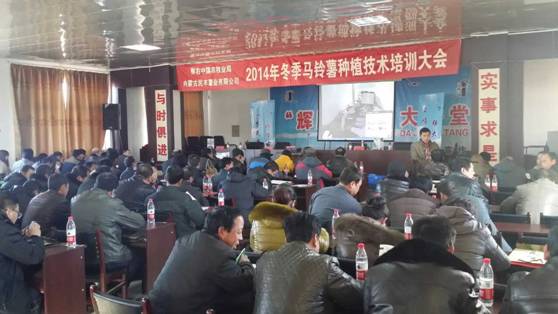 2014年12月23日至25日,內(nèi)蒙古民豐薯業(yè)有限公司聯(lián)合察右中旗農(nóng)牧業(yè)局共同舉辦的2014年馬鈴薯種植培訓大會于察右中旗召開。村支部書記,主任、代理商、種植戶共計239人參加了培訓。中旗農(nóng)業(yè)局、種子管理站、鄉(xiāng)(鎮(zhèn))分管農(nóng)業(yè)的領導出席了會議。察右中旗電視臺進行了現(xiàn)場采訪報道。